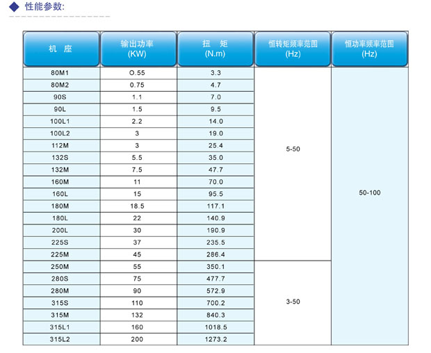 該系列電機(jī)可由變頻器供電。單獨(dú)供電的風(fēng)機(jī)可保證電機(jī)在整個(gè)頻域內(nèi)正常運(yùn)行。